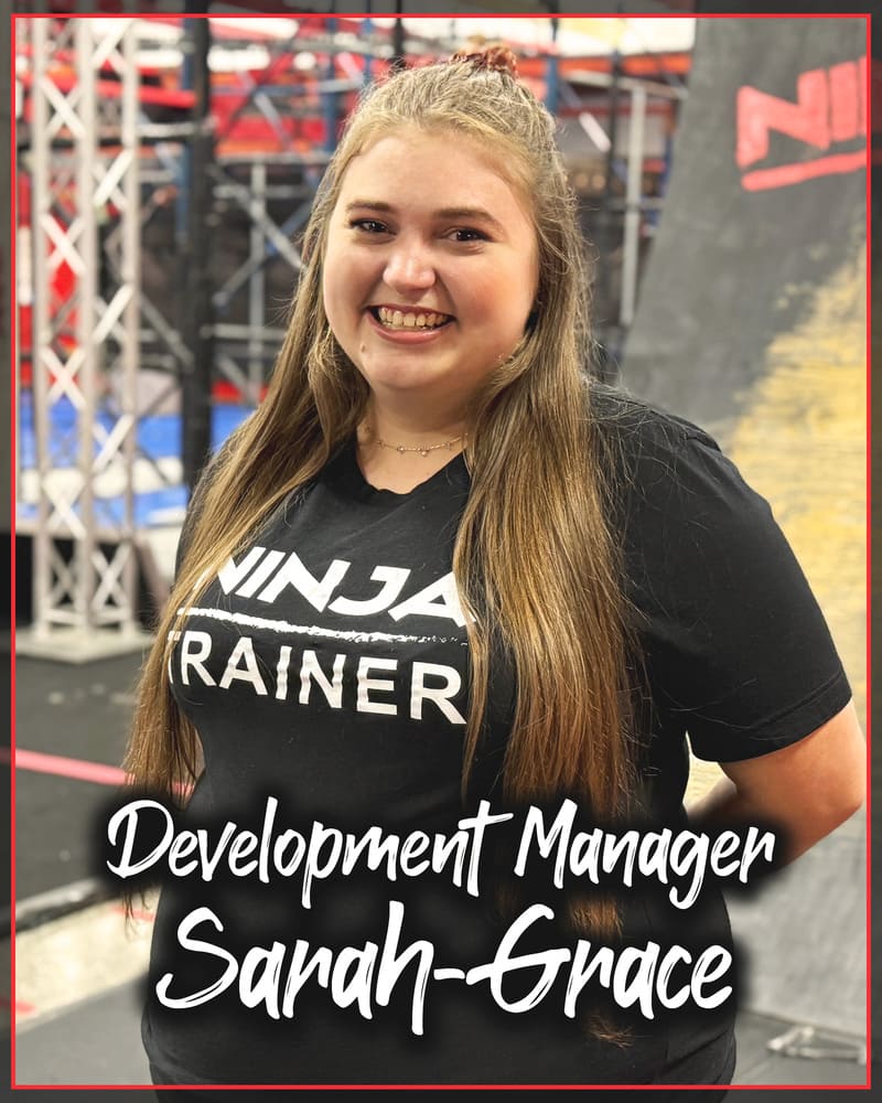 Say hello to Coach Sarah-Grace (or SG), our powerhouse Development Manager. She first joined Rocket City Ninja Obstacle Academy in March 2022—starting at the front desk and quickly climbing her way into leadership. After stepping away in March 2024 to welcome her daughter into the world, she’s officially back and more confident than ever, ready to help lead the Academy into its next exciting chapter.